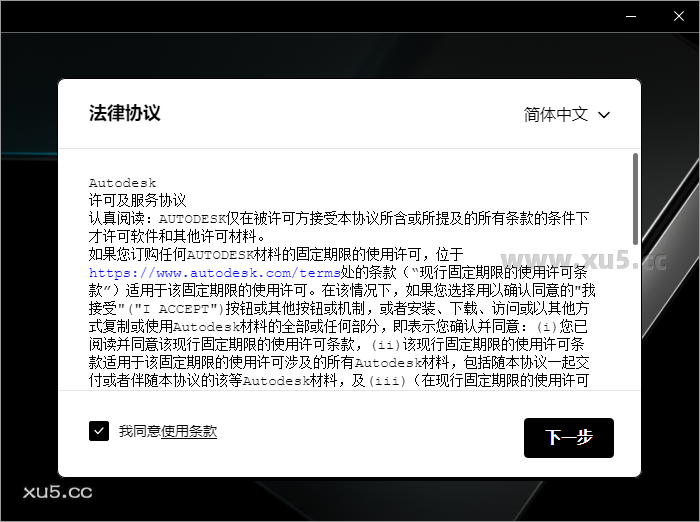 勾选同意下一步